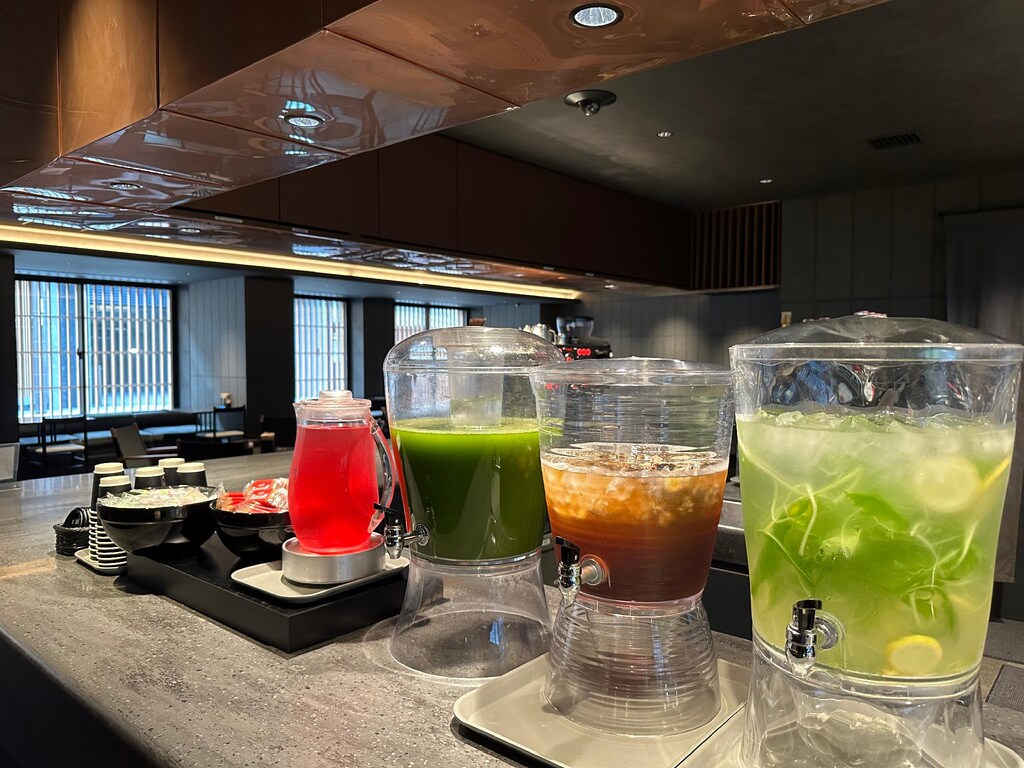 そして、ホテルのロハスラウンジでは、宿泊者限定で無料のウェルカムドリンクを提供。京都の日本酒やカクテル、梅酒、ソフトドリンク(コーヒーやお茶、ジュース)などが落ち着いた雰囲気の中で楽しめます。(ウェルカムバーは18:00から利用可能)