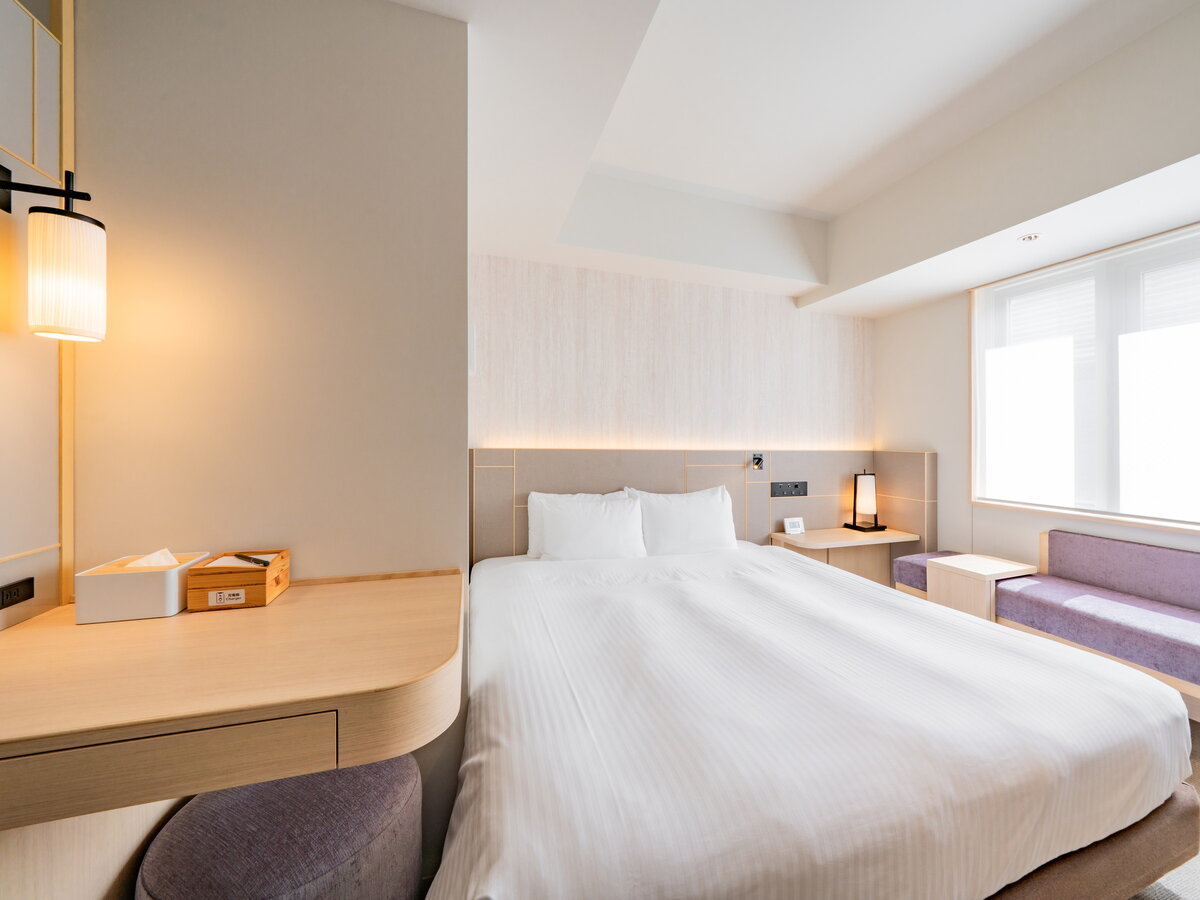 シンプルで心やすらぐデザインのお部屋には140cm幅の広々としたダブルベッドが完備されており、ゆったりと自分だけの時間を過ごせます。