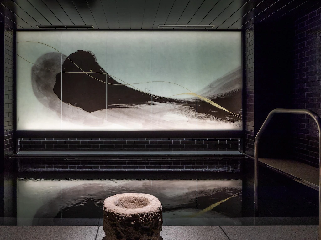 そして、宿泊者専用大浴場には大迫力の墨絵アートがあり、幻想的な空間で癒しのひとときが過ごせます。