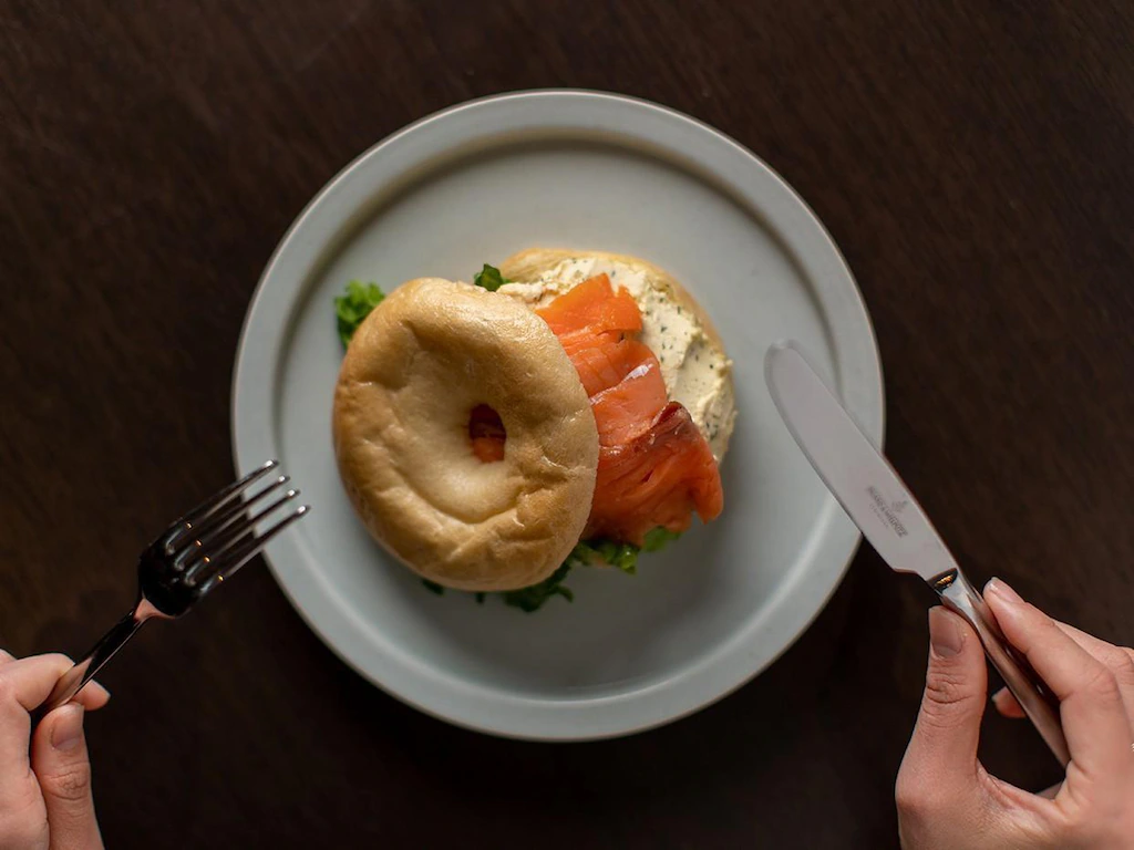 朝食はベーグルサンド3種と、ドリンク4種から自由に組み合わせていただくことができますよ。