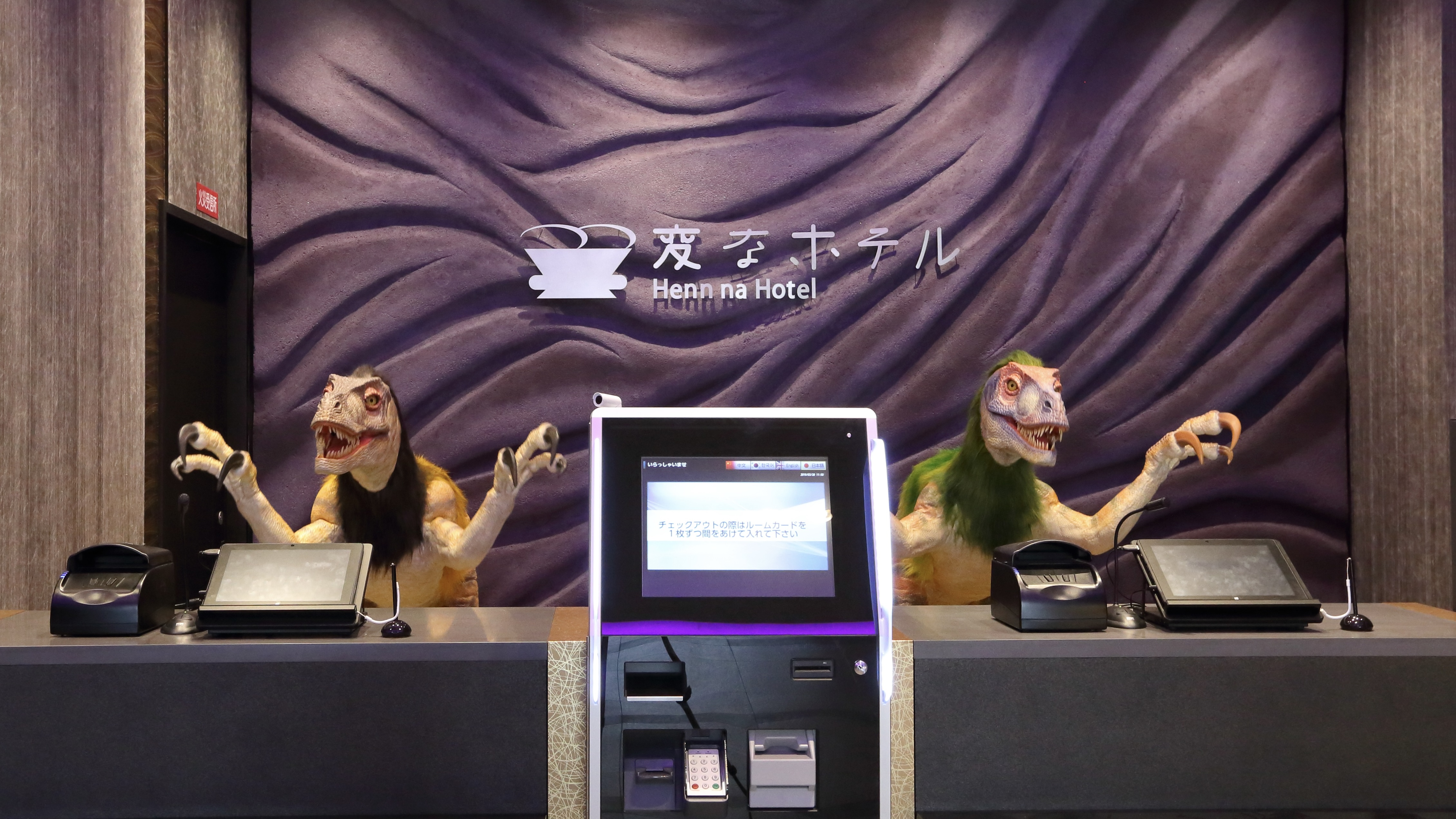 その名の通り変なホテル。チェックインは恐竜のロボットが担当。