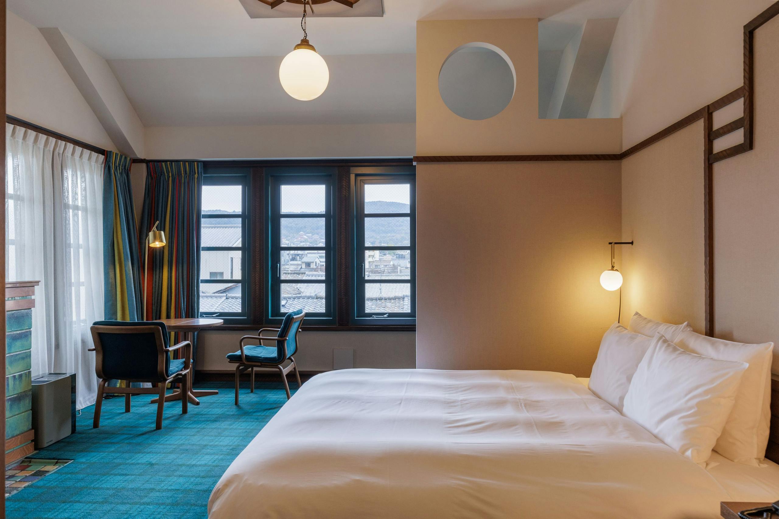 任天堂の旧本社社屋を受け継ぐ既存棟と安藤忠雄が手がけた新築棟のいずれかの棟のお部屋が選べ、既存棟では、昭和レトロな雰囲気を残しながらもモダンなデザインのお部屋が楽しめ、唯一和室と露天風呂を備えた贅沢な仕様のジャパニーズスイートなど様々なスタイルの客室から選べます。