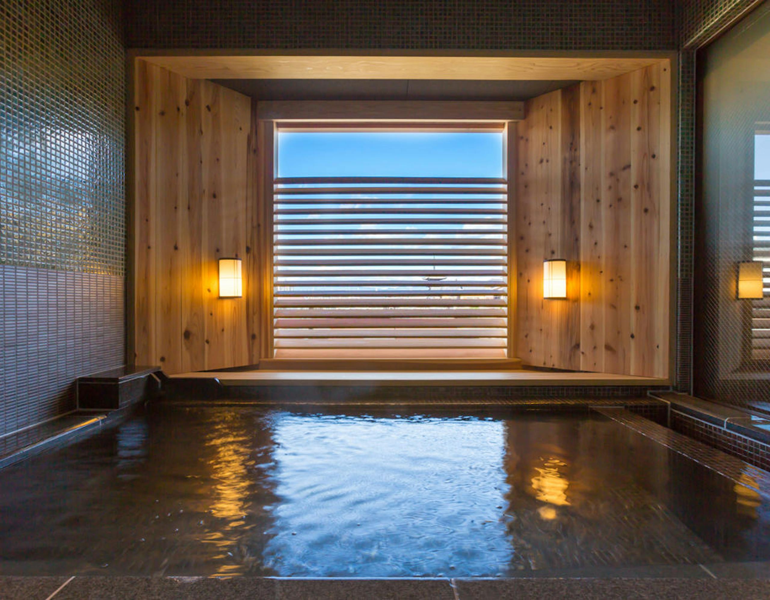 大浴場はホテルの地下910mから湧き出る天然温泉で、半露天風呂もあり、「美肌の湯」とも言われる炭酸水素塩泉の温泉にゆったり浸かることができます。
