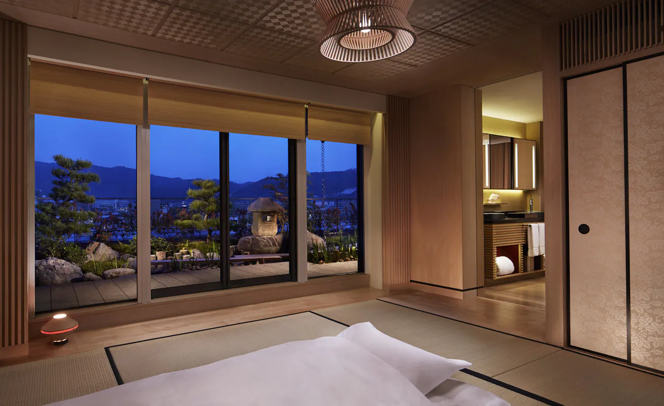 京都最高級クラスのラグジュアリーホテル。大きな窓から自然光が差し込む極上の和の空間を堪能。