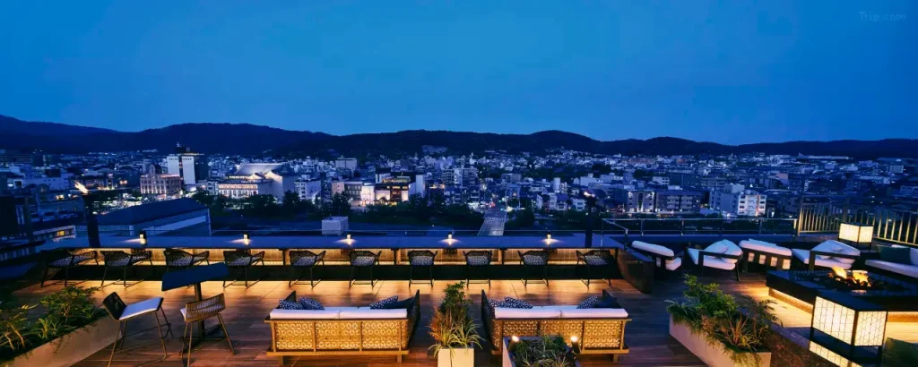 館内にはバーやラウンジもあり、開放感あふれる屋上テラスからは美しい鴨川と京都の風景を楽しめます。