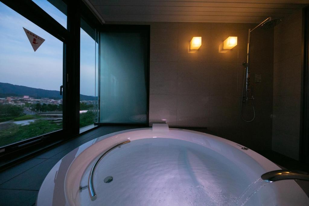 各客室は異なるレイアウトとインテリアで個性豊かに設えられ、大きな窓やルーフトップテラスから鴨川の四季折々の景色を楽しめます。露天風呂やビューバス付きの部屋もあり、鴨川を眺めながらの入浴タイムは格別。