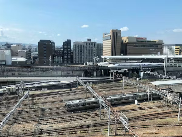 トレインビュー客室があり、窓辺から東海道新幹線やJR在来線、近鉄線、山陰本線が次々と行き交うダイナミックな眺めや、流線型の新幹線が高速で駆け抜ける迫力ある姿、日常の通勤電車がゆったり滑る様子を間近で眺めながら、時間を忘れて楽しめますよ。