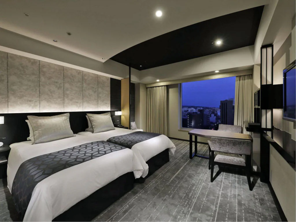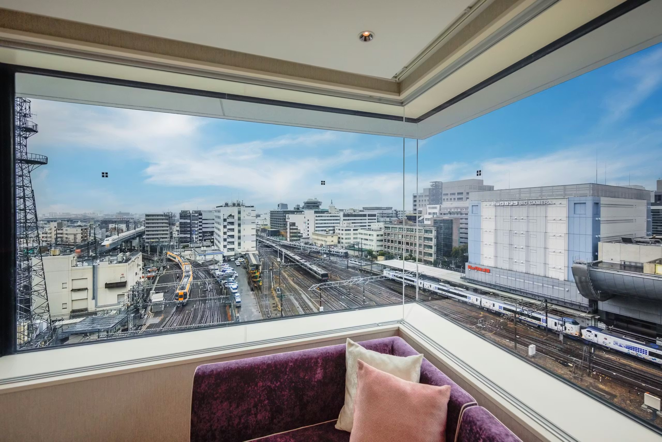 13階「スーペリアデラックスツインルーム」ではトレインビューが楽しめ、新幹線が目の前を滑らかに駆け抜けるダイナミックな眺めが最大の魅力。部屋のカーテンを開けると、大きな窓から電車が次々とホームを往復する様子が楽しめ、まるで旅の始まりと終わりを見ているかのようなロマンチックなひとときに浸れます。