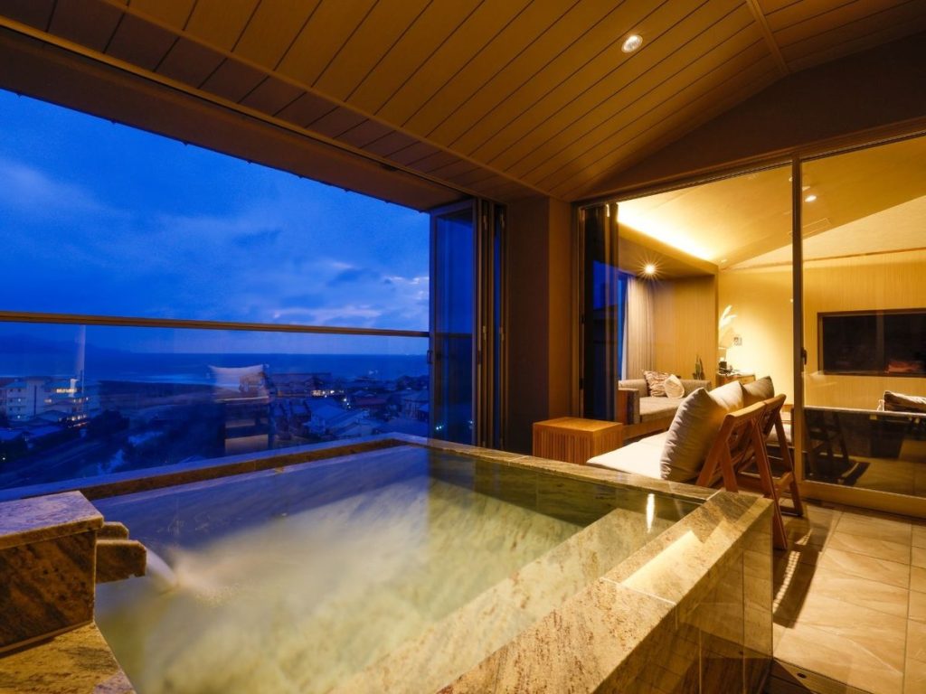 最上階の展望温泉風呂付き客室なら、海を眺めながらプライベートに入浴でき、最高の癒しタイムに。 また無料Wi-Fiやアメニティも充実しており、京都の夕日ヶ浦温泉で贅沢なひとときを過ごせますよ。