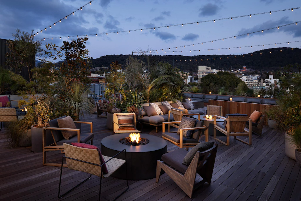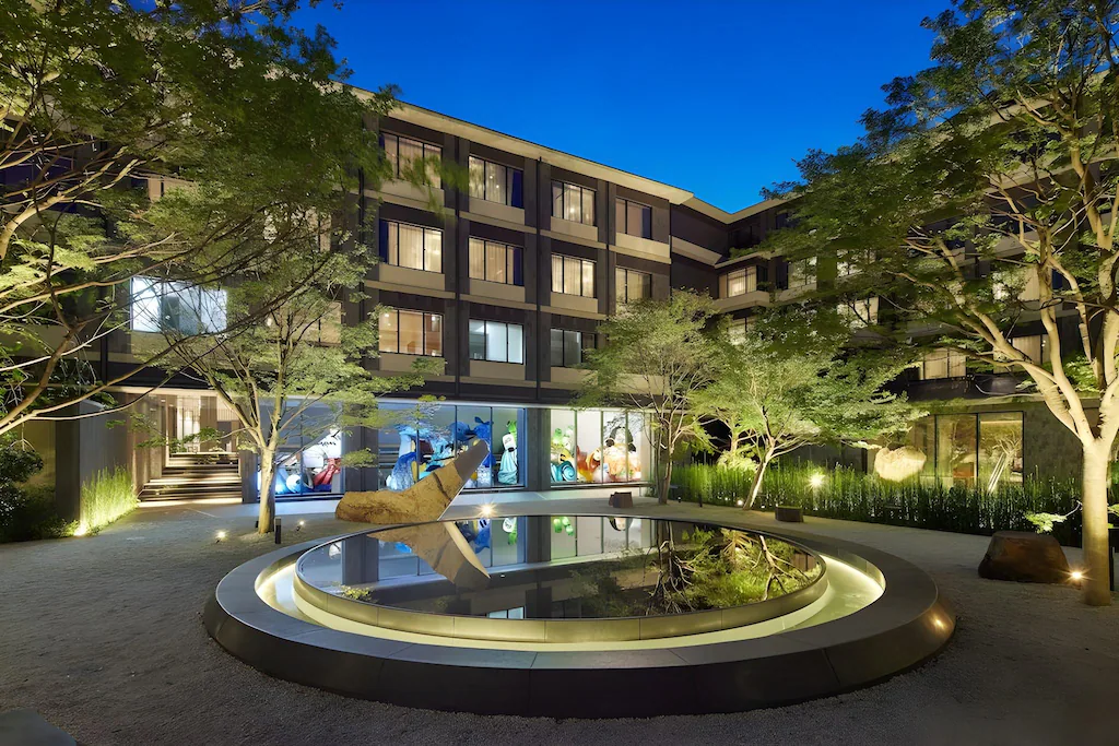 地域との深いつながりを大切にし、「MEET HOT KYOTO.」のコンセプトでここでしか出会えない粋な京都が味わえ、ルーフトップバーやベーカリー、ギャラリーのような廊下、ハイエンドスピーカーによる音楽体験が充実し、ウェルビーイングのためのメディテーションルームも利用可能。