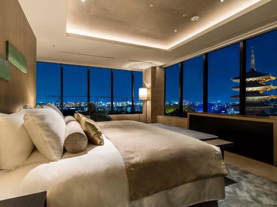 ハイアットブランドのラグジュアリーな内装に京都の和の趣が融合し、料亭「山荘京大和」の日本庭園を望むダイニングや金継ぎ体験などの文化プログラムも魅力。贅沢な空間で五重塔を見ながら、京都をゆっくり味わいたい方にぴったりです。