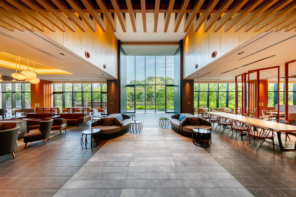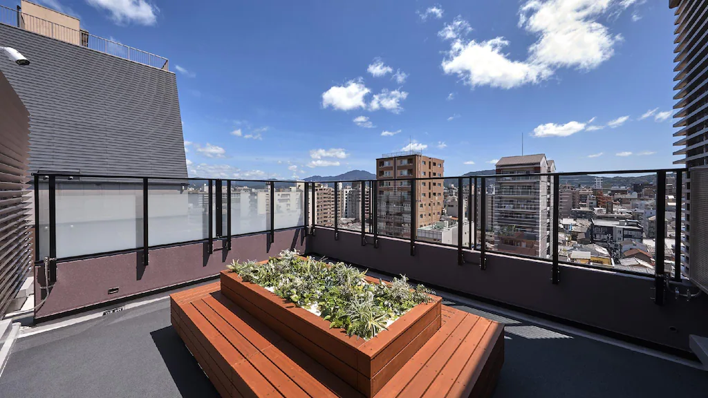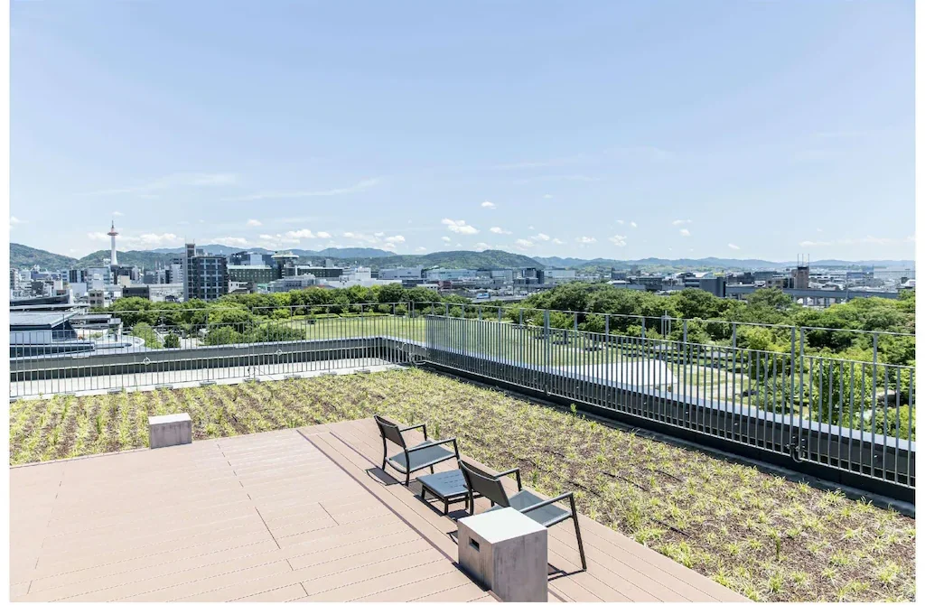 客室は、木の温もりを感じるシンプルなデザインが特徴で、靴を脱いでくつろげる「ウッドフラット」や、公園の緑を間近に感じるテラス付きの「ガーデン」など、まるで自宅の延長線上にあるようなリラックス空間が広がります。また、京都の伝統工芸をテーマにした「aeru room」など、京都を肌で感じられるお部屋も選べます。