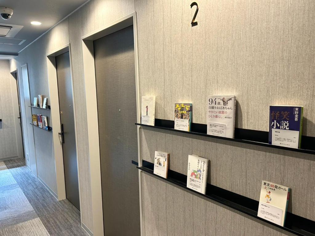 1階ロビーには小学館が全面協力した約2000冊の蔵書がジャンル別に並んでおり、自由に閲覧可能。蔵書は小説、文芸、アート、マンガなど多岐にわたり、各フロアや棚、部屋ごとに異なるテーマが定められていて、テーマに沿った選書がされています。