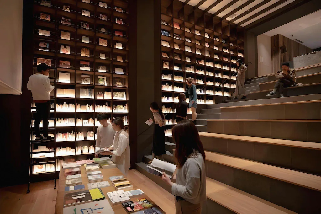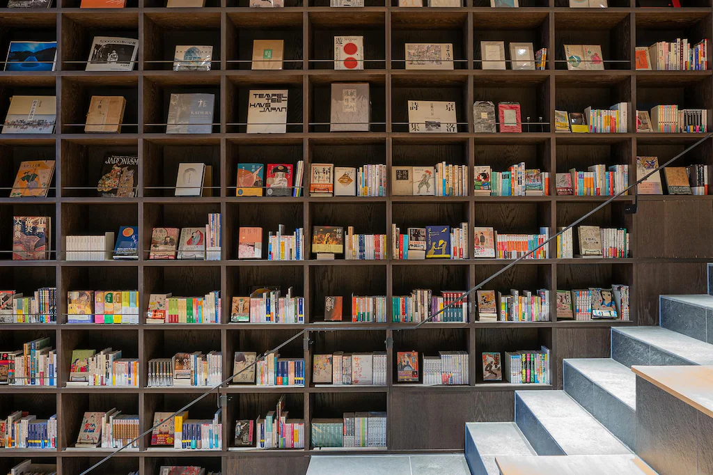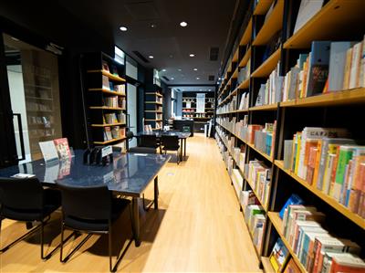 京都の歴史や文化、建築、芸術、そして食にまつわる書籍が約300冊ほど厳選されており、洞窟のような落ち着いた照明とモダンなインテリアの中で心ゆくまで読書を楽しむことができます。