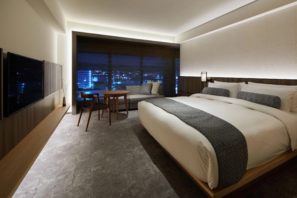 ザ・サウザンド京都は京都駅徒歩2分という都会の喧騒にありながら、客室は「引き算の美学」に基づいた洗練されたミニマルなデザインで静謐な空気に満ちています。