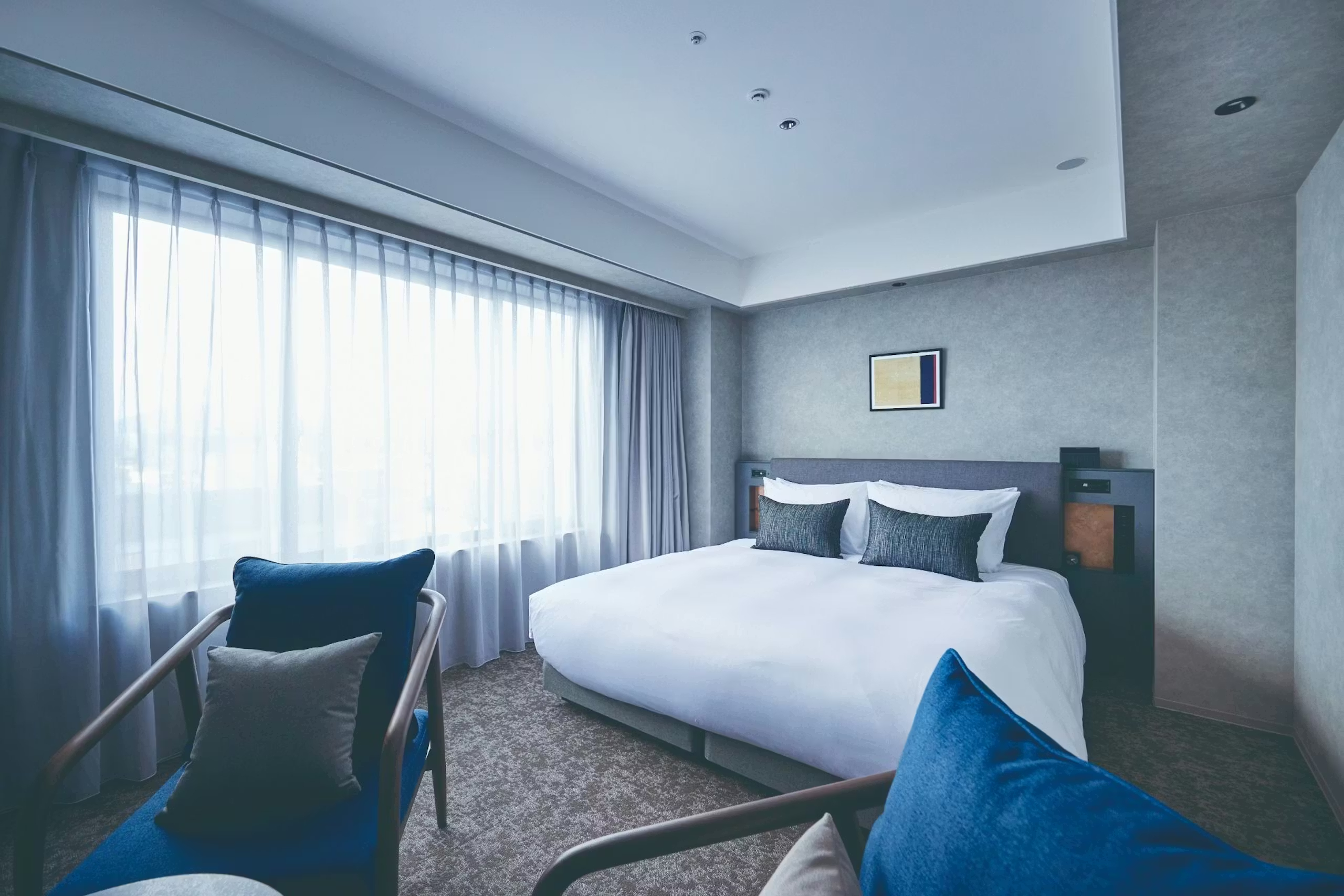 ホテル全体は「禅」の精神を感じさせるミニマルで美しい造りになっており、開放感あふれる吹き抜けの大階段は、二人の気分をより一層高めてくれます。客室もシンプルながら温かみのあるモダンな内装で、大きな窓からは柔らかな光が差し込み、ゆったりと流れる時間を二人だけで贅沢に楽しめます。